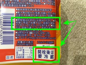 さらに大きな字で「開栓後は要冷蔵」とも記載があり、開封後は常温保存できないようです。