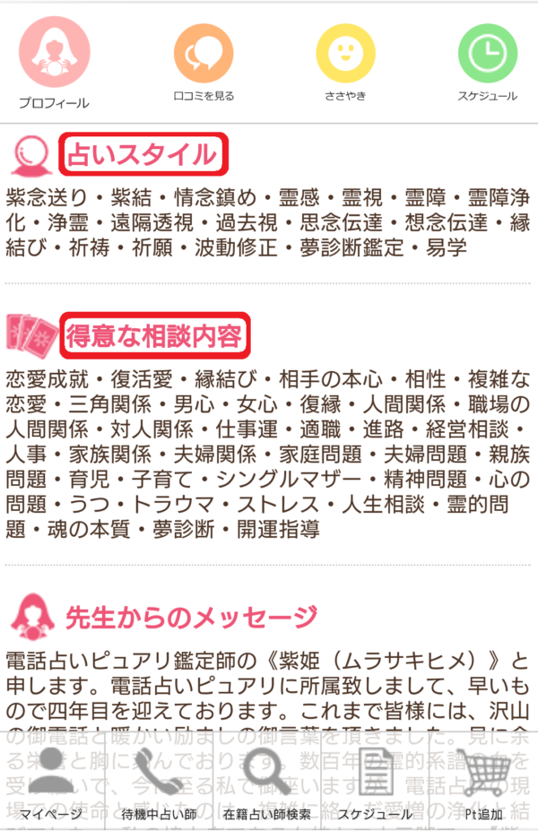 電話占いピュアリであなたと相性がいい占い師さんに出会えるように、最後までチェックしてみてください。
