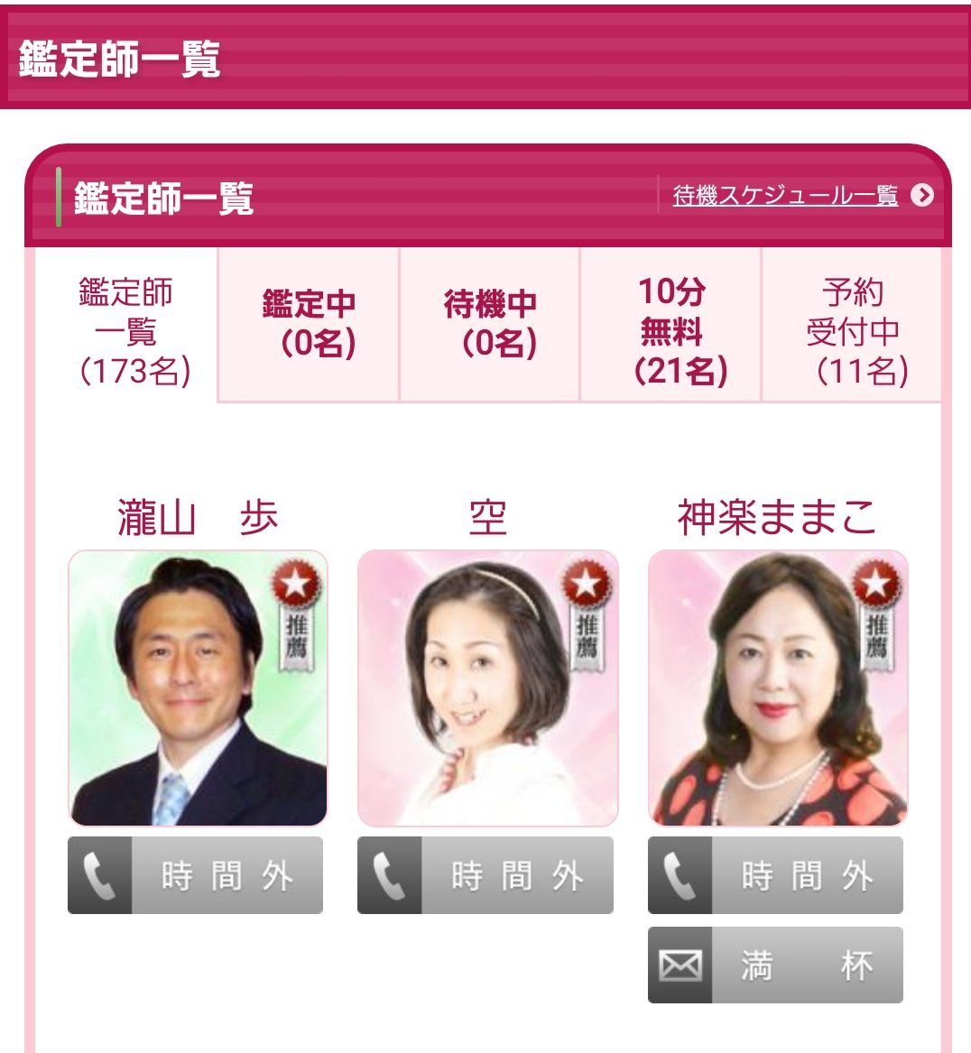 鑑定件数が多く人気の先生は、占いの結果も安定しています。ぜひお悩みの相談内容と照らし合わせながら、チェックしてみてください。
