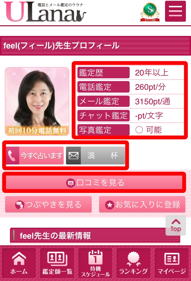 ウラナでは強い力を持っていて高評価の先生でも、鑑定料が安い場合が多々あります。相性がいい先生を選ぶために、事前に口コミやプロフィールを検証するのをお忘れなく!