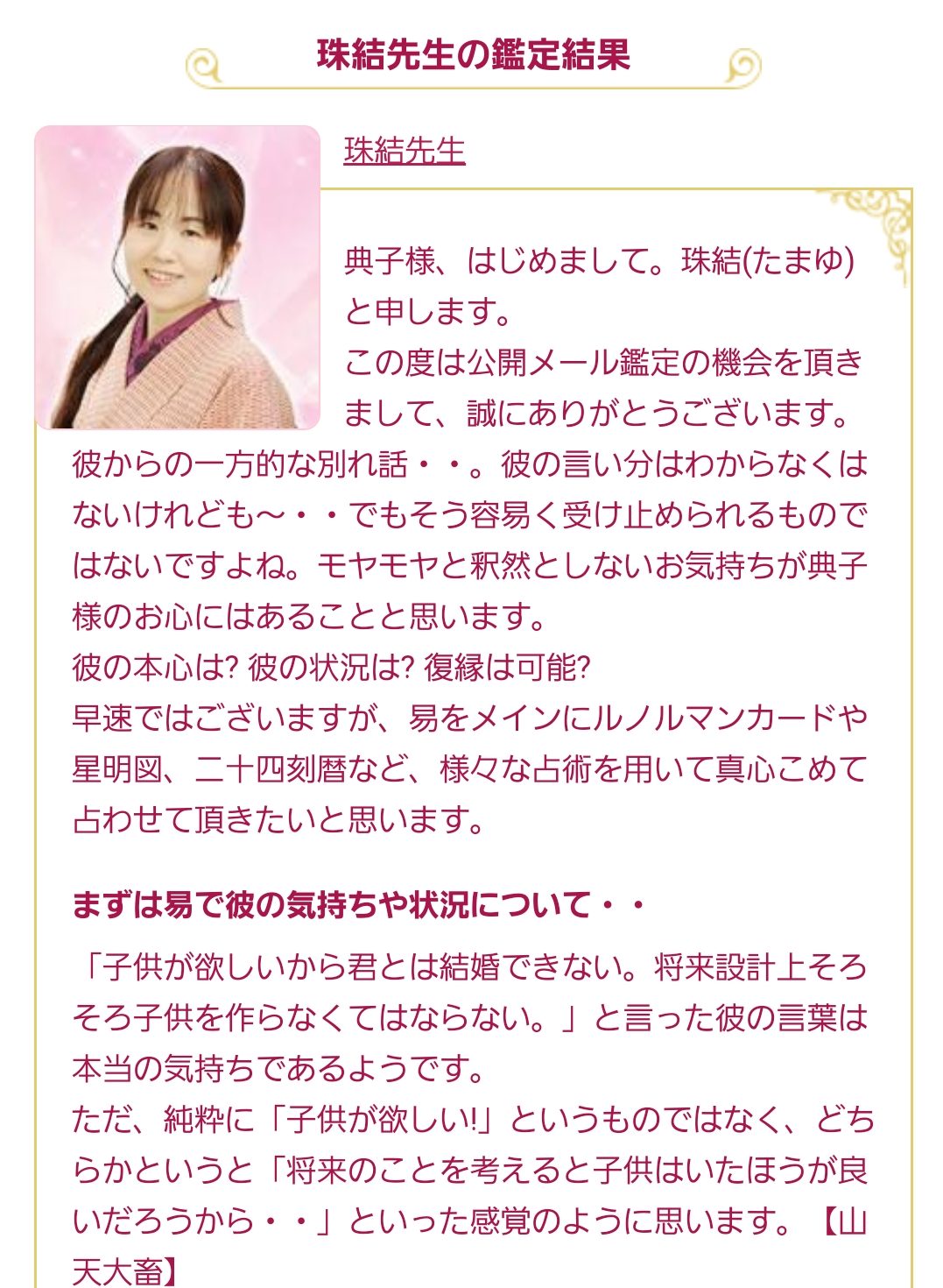 相手の気持ちや状況だけで考えれば、1番当てたのはMAI先生だと思います。アゲがなくて考えさせられる鑑定でした。