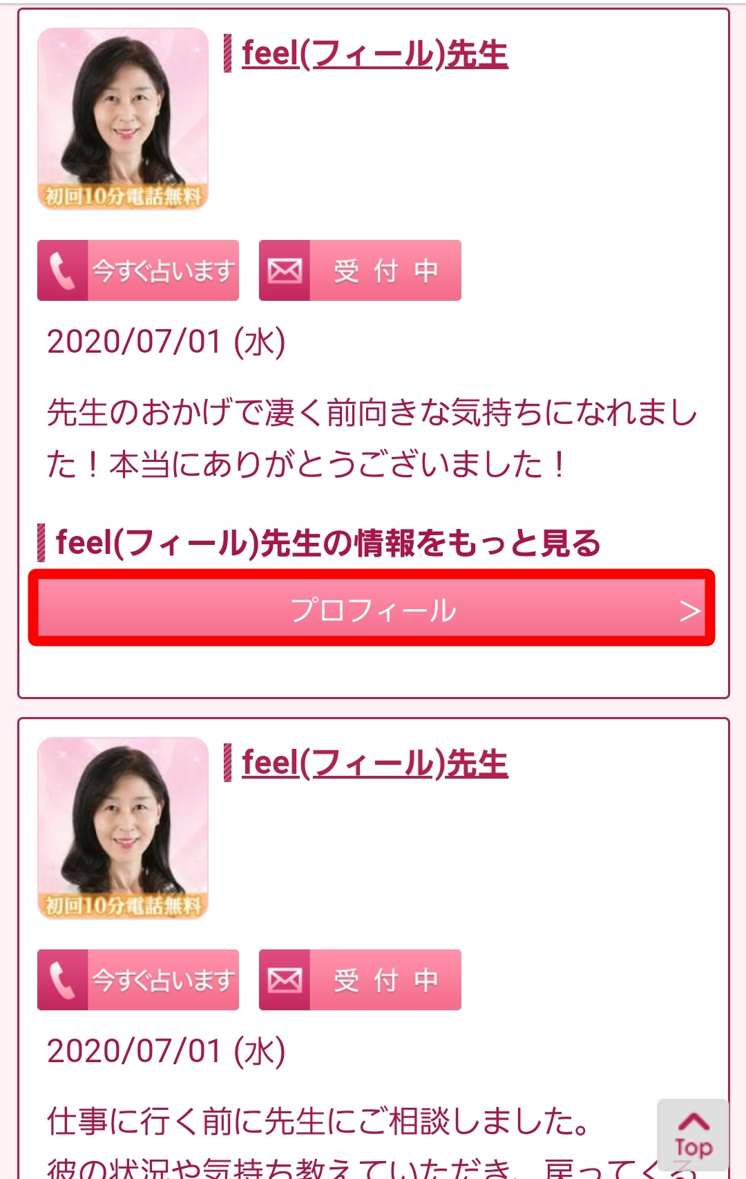 電話占いウラナでは、他に「推薦」という称号もあり、口コミ数やリピート率などが急増中の先生に表示されます。