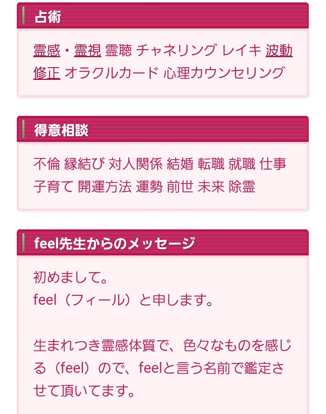| 得意な占術 | 霊視・霊視、霊感タロット、西洋占星術、数秘術 |