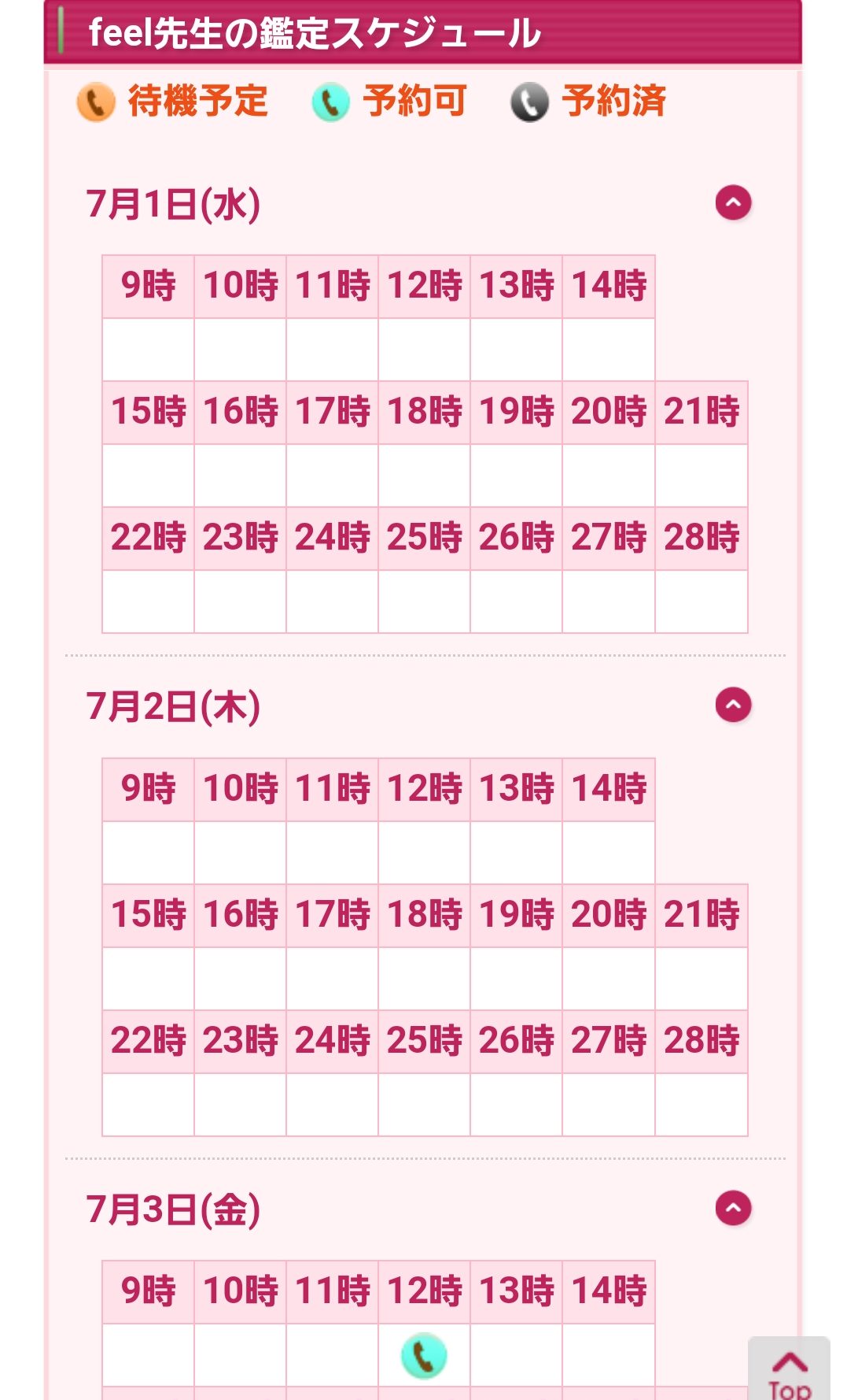 ウラナでは、電話占いのみ予約が可能です。先生のプロフィール内にあるスケジュールから、予約なさってください。電話占いは24時間利用できます!