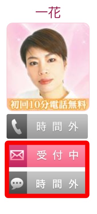 チャットアイコンが表示されているとチャット占いに対応している先生です。