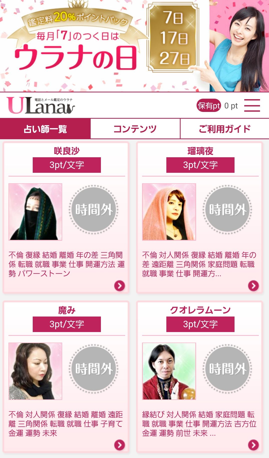 | サービス名 | 電話とメール鑑定のULana(ウラナ) |