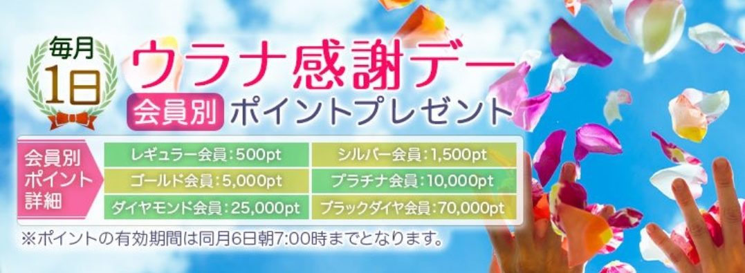 電話占いウラナは、初めての方、ジプシーだった方でも安心&お得に利用できます。無料鑑定ポイントを使い切った後もポイントがどんどん貯まるので、ポイントを活用しながら最適な先生に出会いましょう!