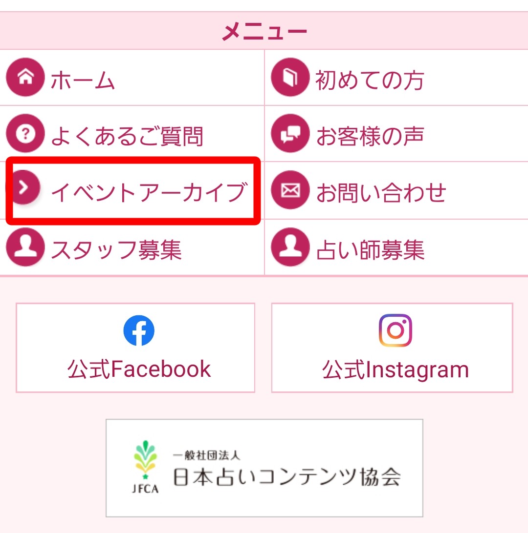 トップページを一番下までスクロールして「イベントアーカイブ」をタップすると、キャンペーン情報がチェックできます。