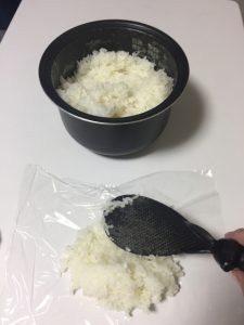 ご飯が炊き上がったらすぐに1食分ずつラップに包み、ジップロックなどの保存袋に入れておくと冷凍に便利です。