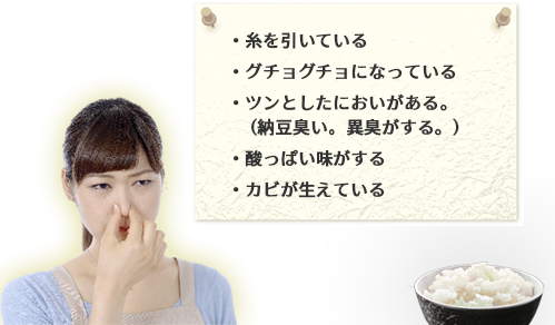 • ご飯が腐ると見た目や臭い、味で判断できる
