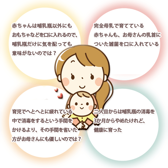 「哺乳瓶の消毒は必要ない」との意見があるのも事実です。