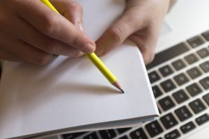 左手でレポートをめくり、右手で間違いを直したり評価をしたりと何かを書き込む要領です。